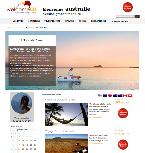 Site vitrine pour l'agence receptive de voyage Bienvenue Australie LTD.